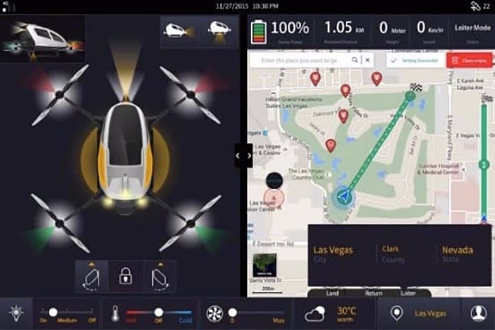 Ad un primo sguardo, il drone passeggeri “Ehang 184” dell’omonima azienda cinese sembra un mini elicottero automatizzato, che fa largo uso di sistemi GPS per prelevare il passeggero (dopo una “prenotazione” attraverso app su cellulare) e trasportarlo verso la sua destinazione senza necessità di alcun pilota. Regge un peso massimo di 100kg, ha un’autonomia di volo di 30 minuti e il suo range può variare dai 40 ai 50km, uno straordinario bypass per il traffico cittadino e gli spostamenti appena “fuori porta”.