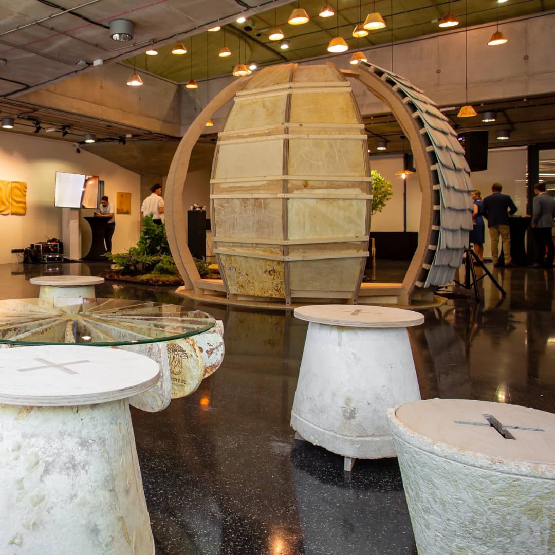 Mi hanno colpito molto i racconti di chi si è trovato di fronte a questi materiali: dicono che appena entravi nella mostra, sentivi l’odore del bosco. Un mix di legno e funghi che ti fa capire subito che sei di fronte a qualcosa di completamente naturale. È come se la foresta si fosse trasferita in città, ma in versione hi-tech. Come spiega Kateřina Sýsová, curatrice dell’evento: “Il micocomposito funziona come isolante termico e acustico, ma può anche essere usato come rivestimento interno. Ha un design interessante che illumina e ravviva tutto l’interno.”