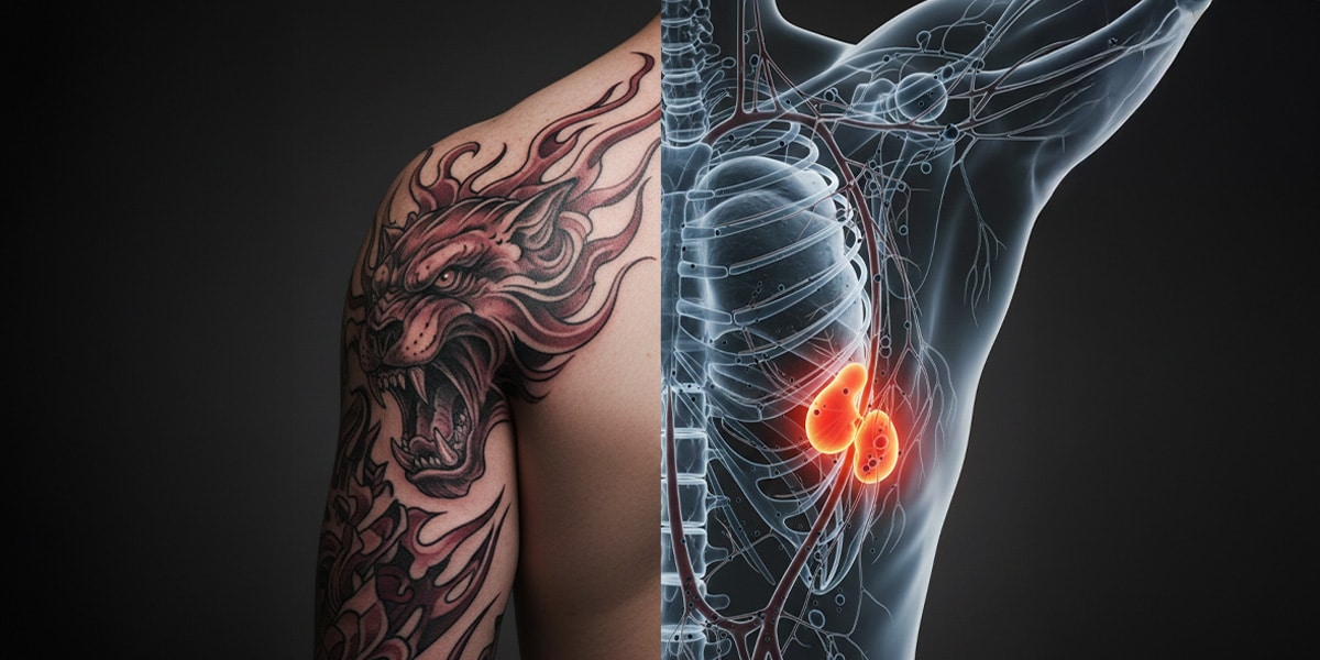 Chiunque si sia fatto un tatuaggio lo sa: l’inchiostro entra sotto pelle e ci resta. Per sempre (o quasi). Quello che molti non sanno è dove finisce davvero. Non sulla pelle, non nel derma. Finisce nei linfonodi, le stazioni di controllo del sistema immunitario, e ci resta intrappolato per anni. Un nuovo studio dell’Istituto di Ricerca in Biomedicina di Bellinzona, appena pubblicato su PNAS, dimostra che l’inchiostro dei tatuaggi viaggia attraverso il sistema linfatico in poche ore e si accumula in quantità significative nei linfonodi, dove innesca una risposta infiammatoria cronica. Non parliamo di ipotesi: parliamo di microscopia avanzata, di topi con tatuaggi sui cuscinetti delle zampe, di macrofagi che fagocitano pigmenti tossici e muoiono nel tentativo di digerirli.