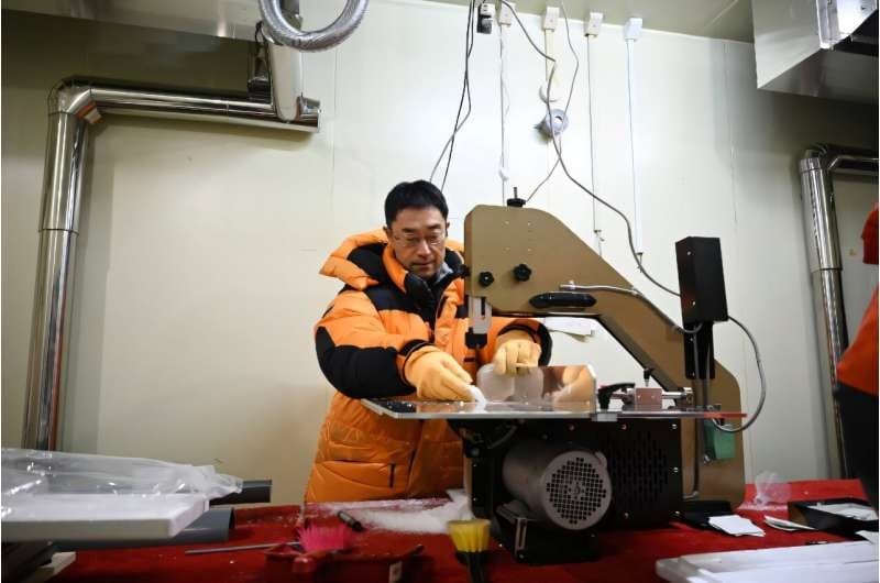 Sora Yaginuma, studentessa del team di Iizuka, taglia con precisione millimetrica una sezione di carota. “Una carota di ghiaccio è un campione estremamente prezioso e unico”, spiega. “Da quel singolo cilindro eseguiamo molteplici analisi, sia chimiche che fisiche”. Il lavoro procede lentamente. Ogni misura deve essere calibrata, ogni dato verificato. Gli errori non sono ammessi quando si lavora con materiale insostituibile.