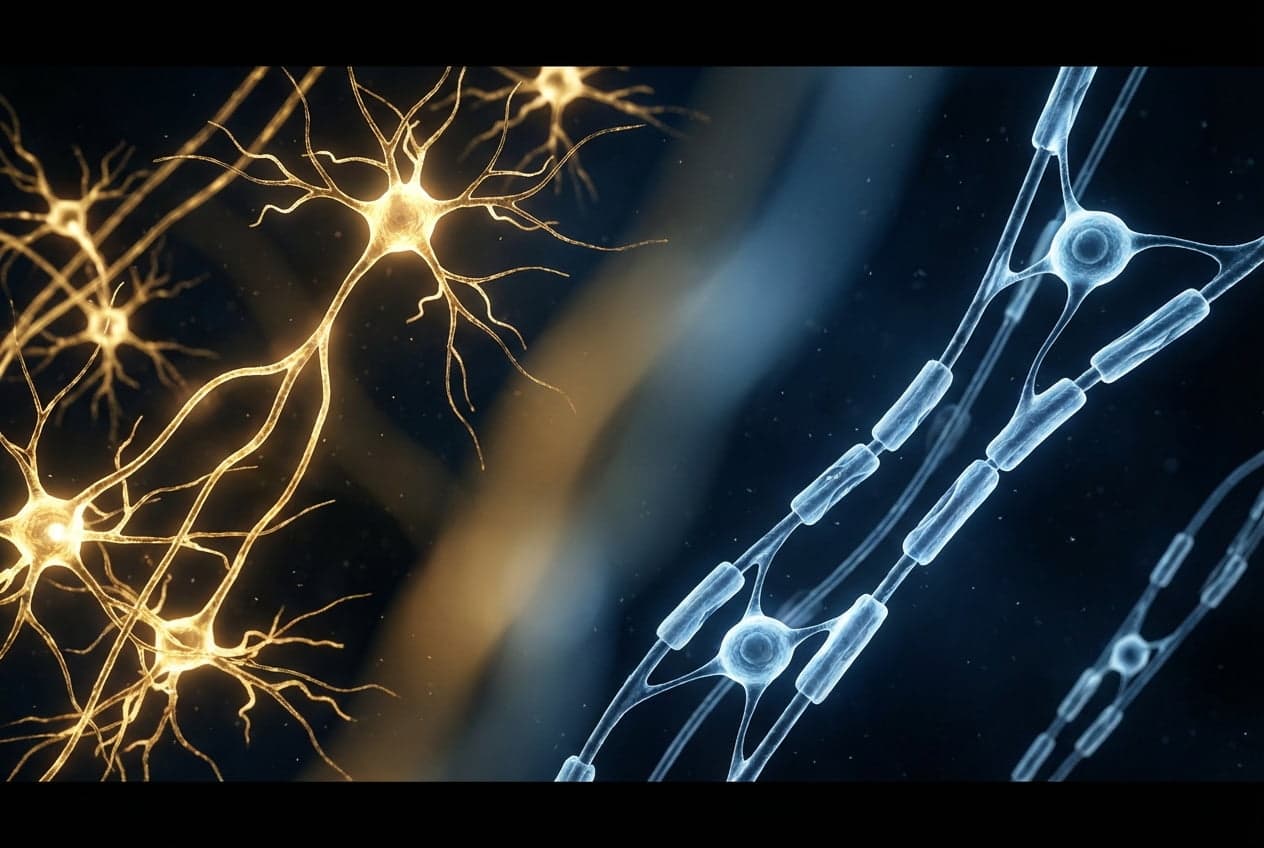Per i disturbi internalizzanti (depressione, ansia, PTSD) il quadro è diverso: il rischio genetico punta sugli oligodendrociti, cellule che non sono neuroni ma ne proteggono e mantengono il “cablaggio”. Un po’ come la differenza tra un problema ai fili elettrici e uno alla guaina che li riveste: il risultato può sembrare simile (la luce non funziona), ma la causa è strutturalmente diversa.